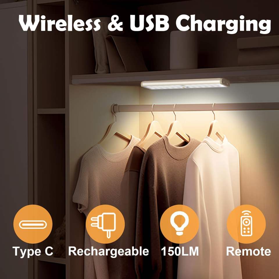 ไฟ LED แบบชาร์จไฟได้สำหรับตู้60LED ไฟ LED พร้อมรีโมทคอนโทรลเฉดสีพลาสติกสำหรับห้องครัวใต้เคาน์เตอร์