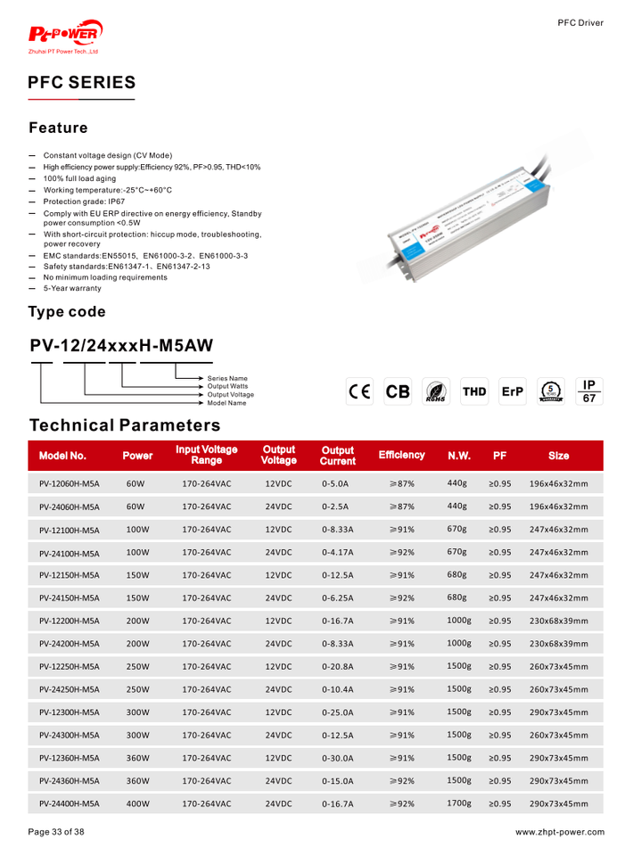 PFC Waterproof Driver-60W-360Wหมายเลขรุ่น
