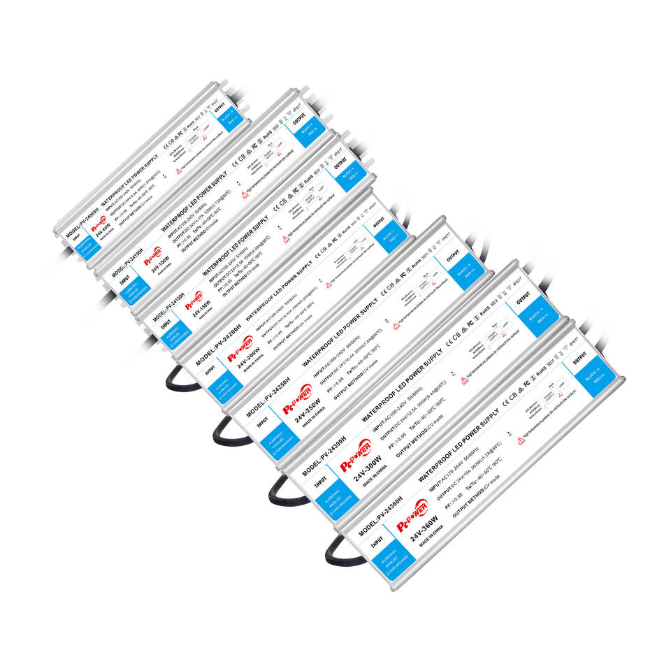 ไดรเวอร์ LED กันน้ำ IP67 60W 100W 150W 200W 250W 300W 360W AC100-240V/170-264V เป็น DC 12V 24V ค่า PF สูง 0.95 แหล่งจ่ายไฟ LED แบบ CV