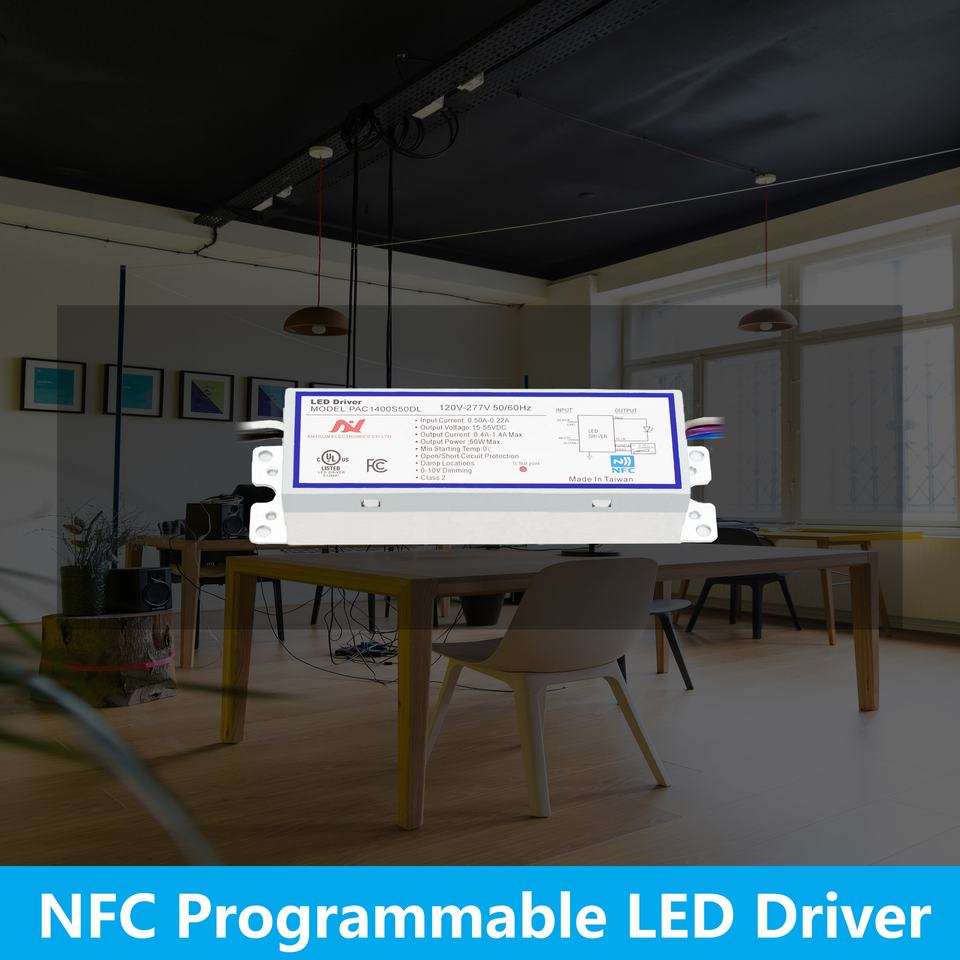 ไดรเวอร์ลดแสง LED 60วัตต์ NFC ตั้งโปรแกรมได้กันน้ำกระแสคงที่0-10โวลต์สำหรับไฟ LED AC-DC การถ่ายโอนพลังงาน