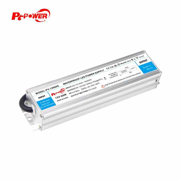 ไดรเวอร์ไฟ LED สำหรับภายนอกอาคาร 60W EMC แรงดันคงที่ 170-264V AC-DC 12V 24V IP67 กันน้ำ สำหรับกล่องไฟ LED