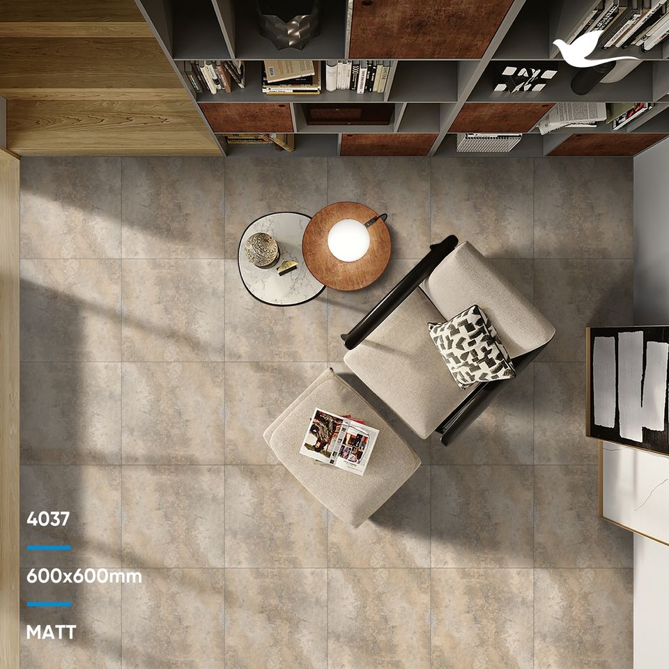 กระเบื้องพอร์ซเลนดีไซน์ทันสมัยขนาด 600x600 มม. ผิวมันเงา ทนกรด ทนการสึกหรอ รับประกันตลอดอายุการใช้งาน
