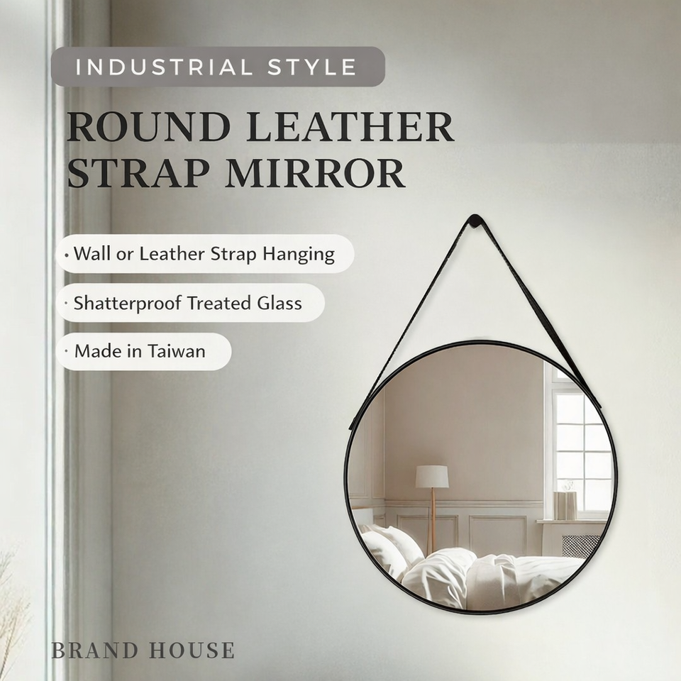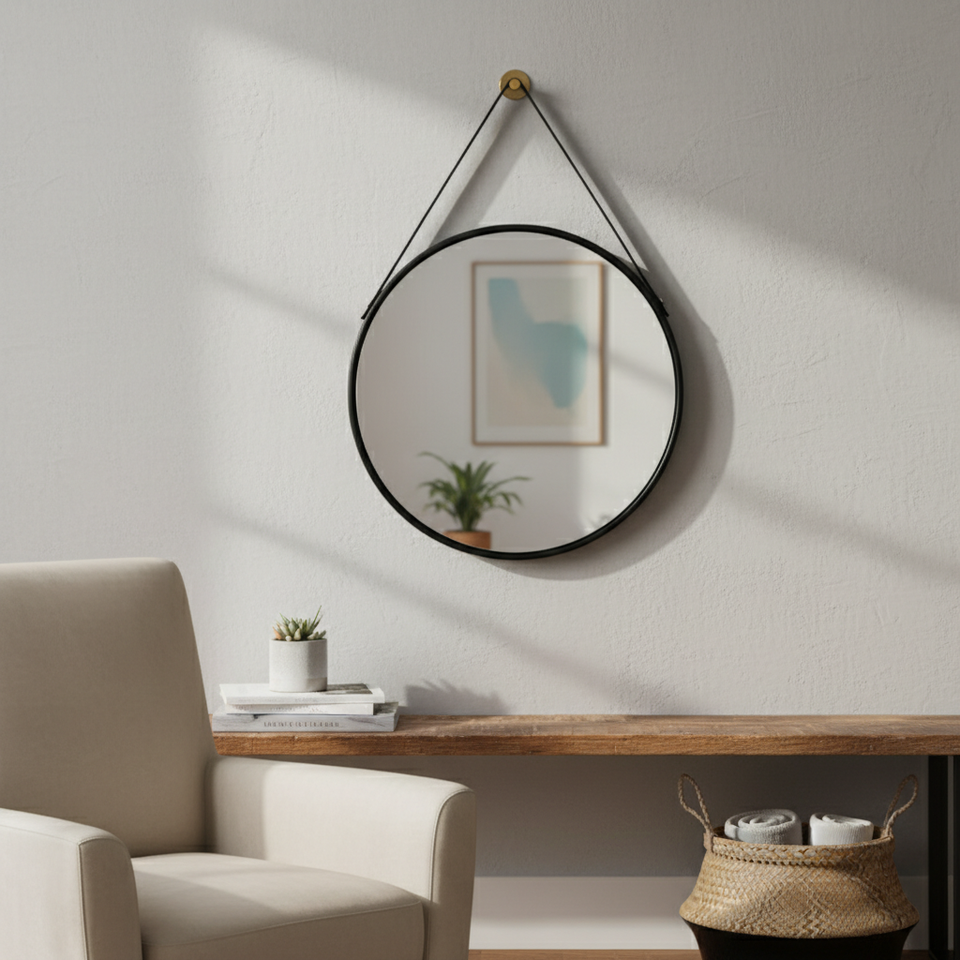 กระจกติดผนังทรงกลมขนาด 60 ซม. สไตล์เรโทรพร้อมกรอบเหล็กและกระจกตกแต่งสำหรับตกแต่งบ้าน