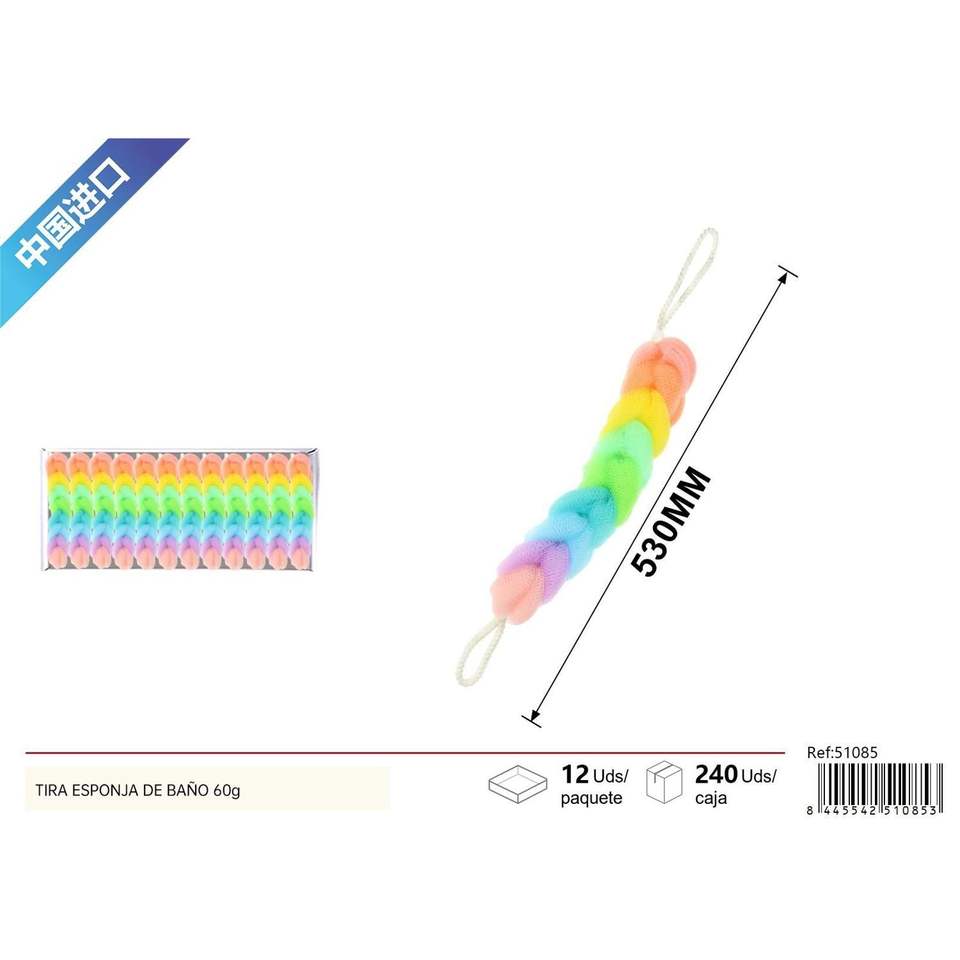 60g Colorful Loofah Bath Sponge Strip Eco-Certified Body Scrubber and Puff Shower Belt with PE Bag Personal Care Products