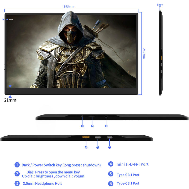 17.3แบบพกพา "Pa หน้าจอคอมพิวเตอร์จอแสดงผล60Hz แผง IPS เข้ากันได้กับอุปกรณ์ประเภท C อินเตอร์เฟซ
