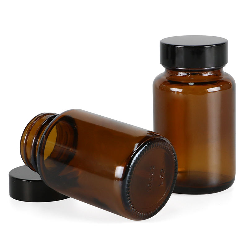 ขวดแก้วกว้างสีเหลืองอำพันสำหรับยาเม็ดขนาด60มล. 75มล. 100มล. 150มล. 250มล. 300มล.
