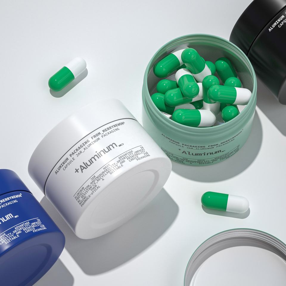 กระป๋องอลูมิเนียมแบบแคปซูล 60 มล. - เกรดอาหารและยา, บรรจุภัณฑ์สี/โลโก้ตามสั่งสำหรับยา, อาหารเสริม และวิตามิน