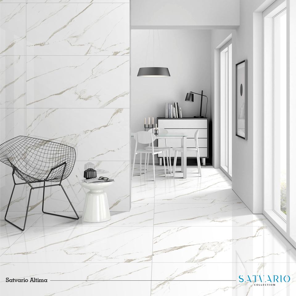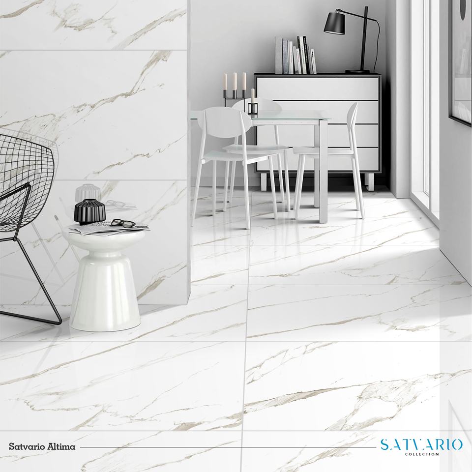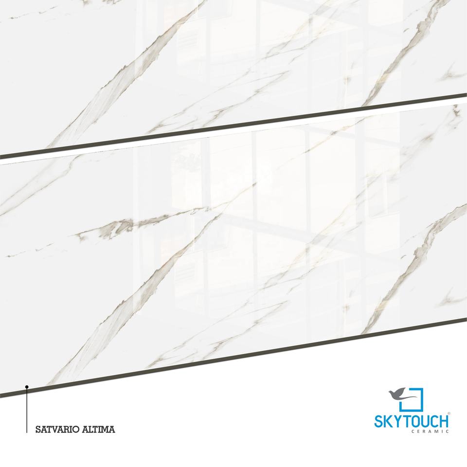 กระเบื้องพอร์ซเลนเคลือบเงาสีขาวลายหินอ่อนขนาด 60x120 มม. และ 600x1200 มม. ขัดเงาเต็มแผ่น สำหรับปูพื้น จากอินเดีย