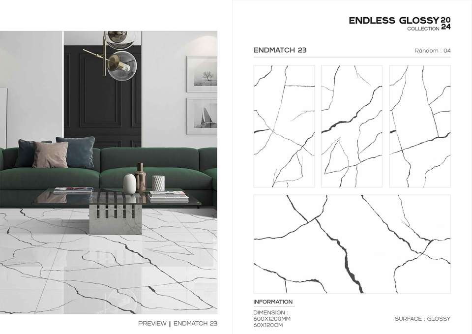 กระเบื้องพอร์ซเลนขัดเงาขนาด 60x120 ซม. (600x1200 มม., 24x48 นิ้ว) ลายหินอ่อน เงาสูง สำหรับตกแต่งภายในหรูหราและโครงการต่างๆ