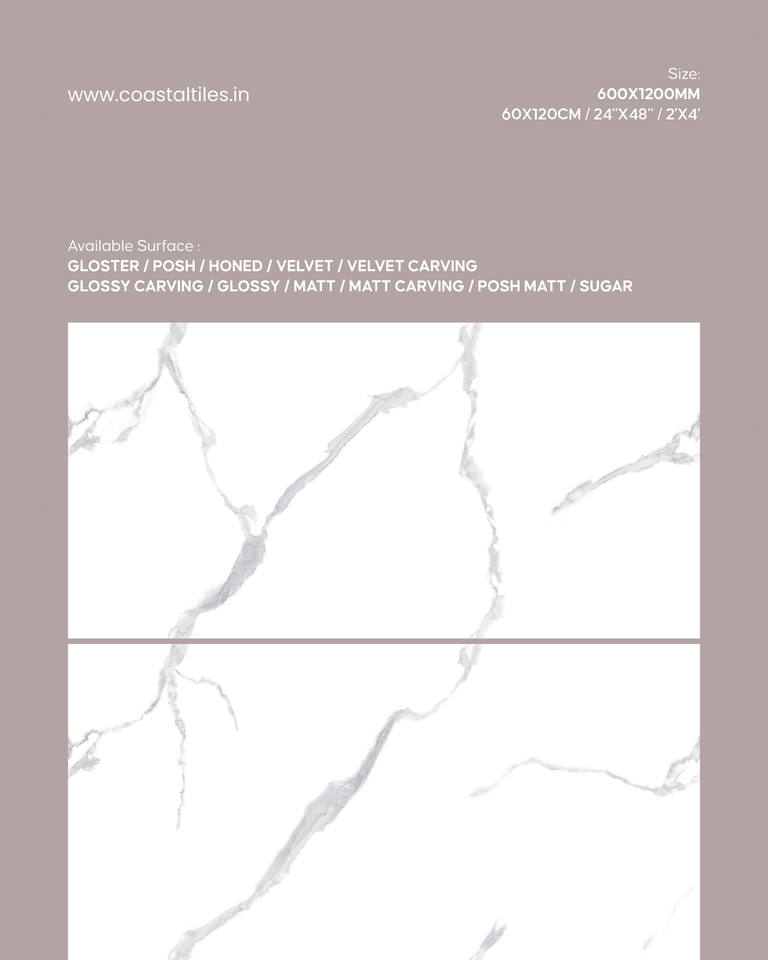 กระเบื้องพอร์ซเลนขนาด 60x120 ซม. ลายหินอ่อนคาร์รารา มีจำหน่ายหลากหลายขนาดพื้นผิวและสามารถปรับแต่งได้