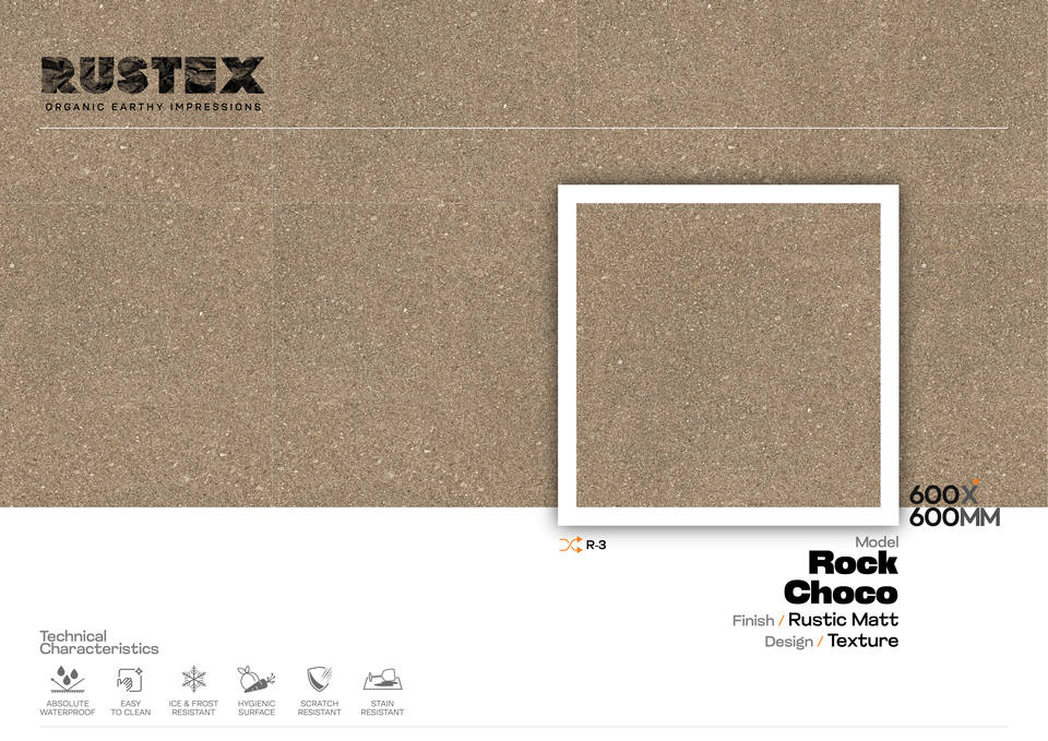 กระเบื้องพอร์ซเลนทนทานต่อน้ำคอนกรีตขนาด60x60ซม. ลายหิน Choco-rustic Matt 600x600มม. กันลื่นสำหรับตกแต่งภายใน