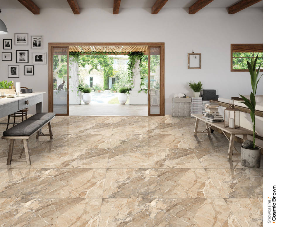กระเบื้องเซรามิคพอร์ซเลนลายหินอ่อนขนาด60x60ซม. ลายจักรวาลสีน้ำตาลมันวาวขนาด600x600มม. คุณภาพระดับพรีเมียมสำหรับห้องนั่งเล่นและห้องนอน