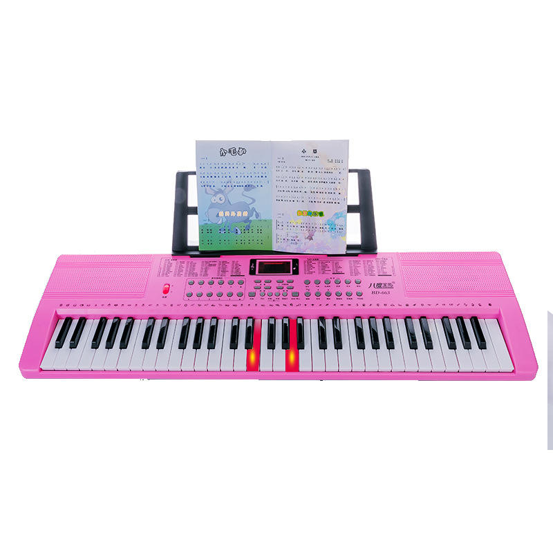 คีย์บอร์ดอิเล็กทรอนิกส์สำหรับเด็ก 61 คีย์ สีชมพู พร้อมไมโครโฟนและแหล่งจ่ายไฟ สำหรับเด็กอายุ 5-14 ปี ของเล่นเสริมพัฒนาการ