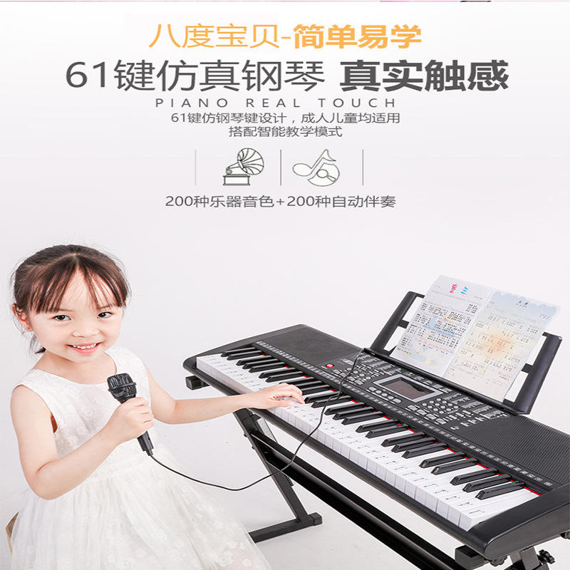 ของเล่นดนตรีคีย์บอร์ดอิเล็กทรอนิกส์ 61 คีย์สำหรับเด็กพร้อมไมโครโฟนและฟังก์ชั่นออคเทฟ มีรุ่นสีชมพูและสีดำให้เลือก