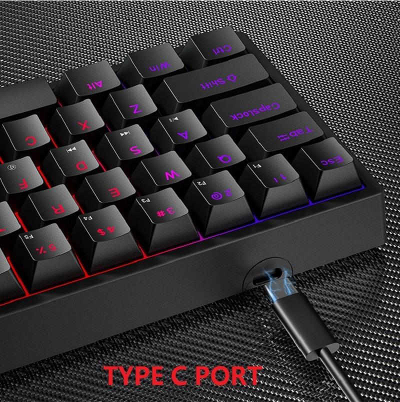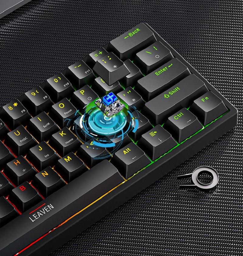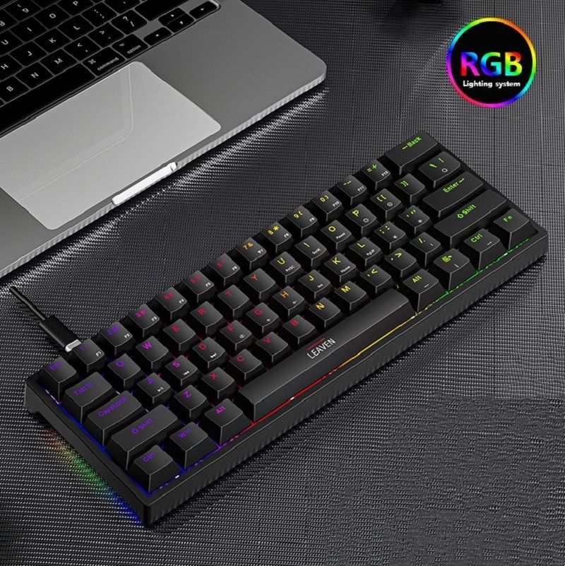 คีย์บอร์ดสำหรับเล่นเกมกลไกแบบมีสาย RGB 61คีย์สวิตช์สีฟ้าแบบถอดเปลี่ยนได้สำหรับคอมพิวเตอร์แล็ปท็อปพีซี