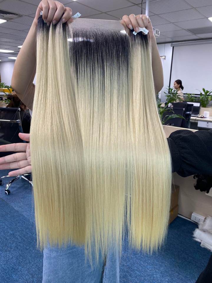 มัดผมมนุษย์มีสีบลอนด์น้ำผึ้ง #613ผมแท้สี10A 5x5ลูกไม้แบบตรงมี HD