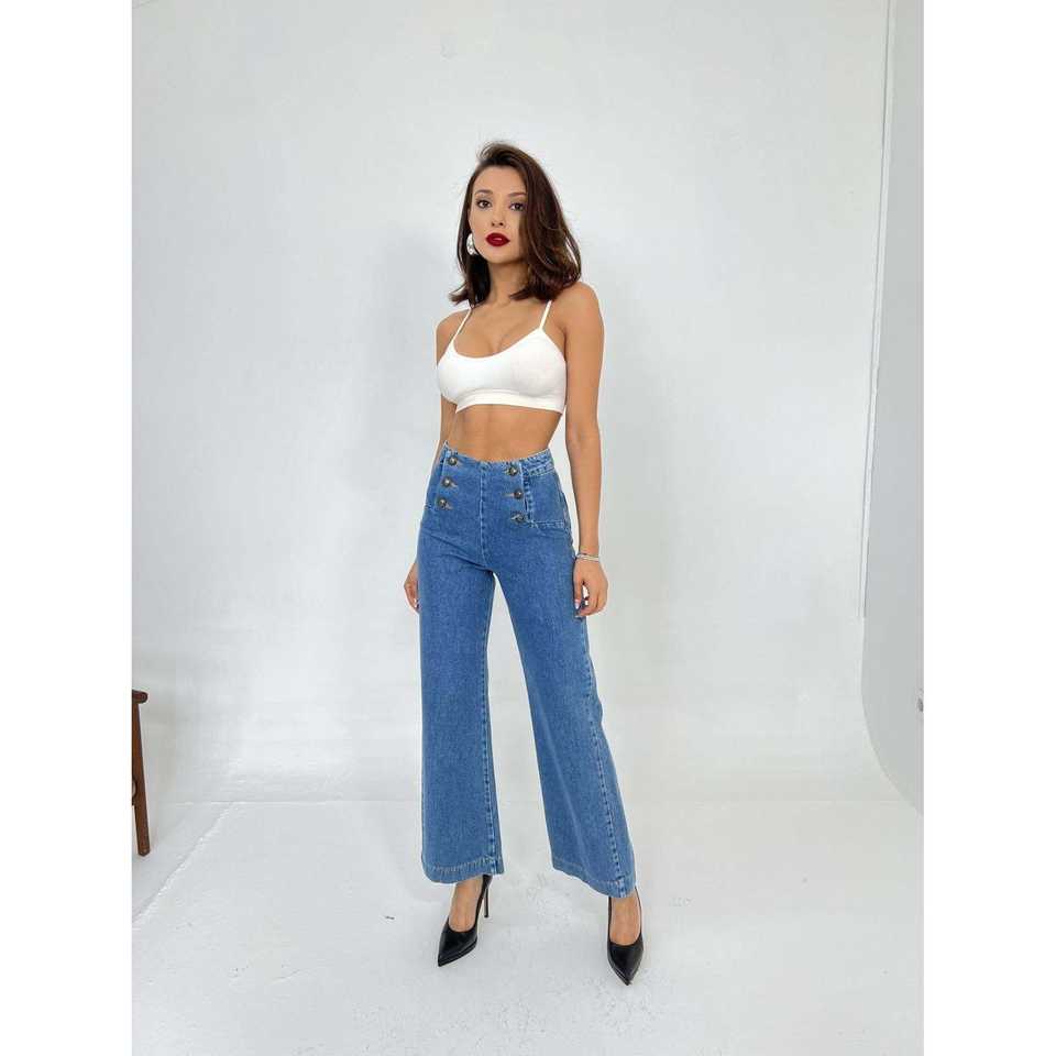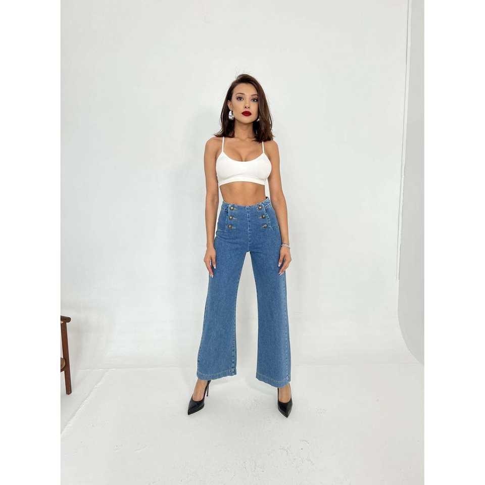 6163 Button Palazzo Mavi Denim Wide Leg Pants with High Waist Breathable Canvas