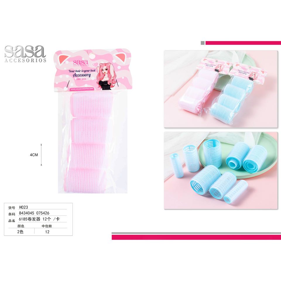6185 Ceramic Hair Curlers 12-Piece Pack with PTC Heater & LCD Temperature Display 8 Pink & 4 Blue Card Pack Styling Hair