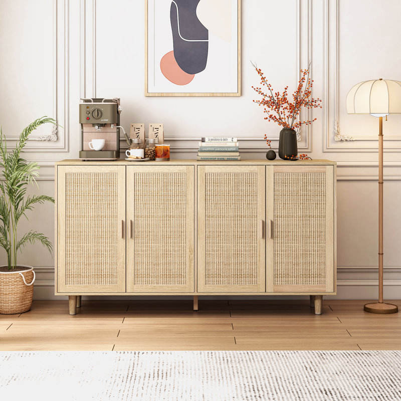 ตู้หวายสำหรับเก็บของตกแต่ง62.2โต๊ะบุฟเฟ่ต์ตู้ทานอาหารสำนักงานมี4ประตูสำหรับห้องนั่งเล่น