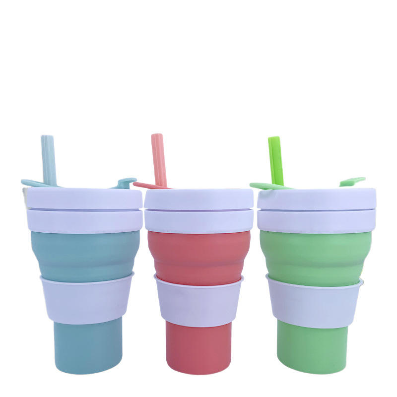 ขวดน้ำพับได้แบบพกพาขนาด 620 มล. ทำจากซิลิโคน พร้อมหลอดดูดน้ำ แก้วแบบยืดหดได้ สำหรับกิจกรรมกลางแจ้ง สินค้าพร้อมส่ง ขวดน้ำสำหรับกาแฟ