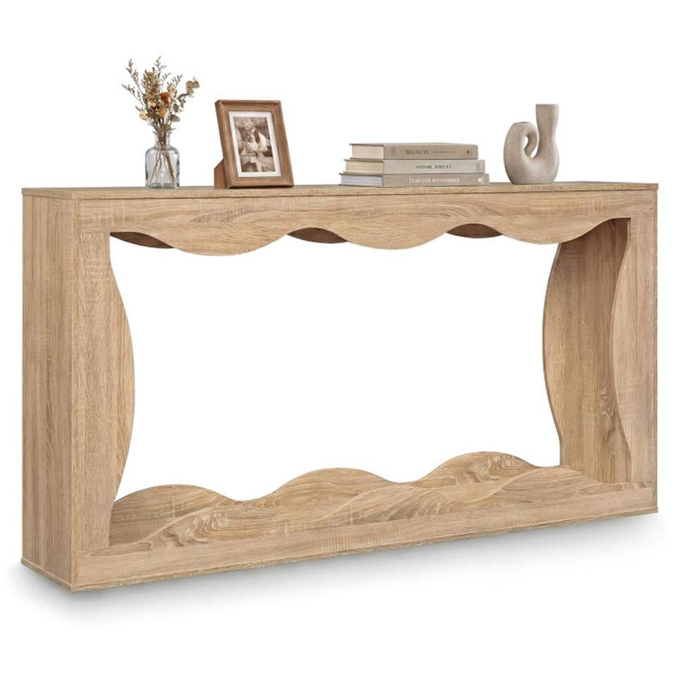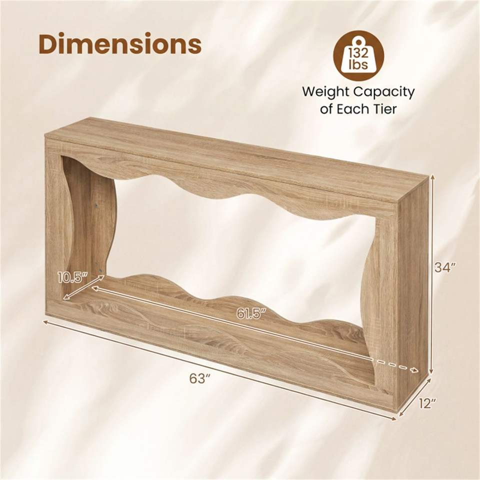 โต๊ะคอนโซลทรงแคบขนาด 63 นิ้ว ดีไซน์ลายคลื่นแบบโปร่ง 2 ชั้น โต๊ะทางเข้ายาวพิเศษพร้อมชั้นวางของ