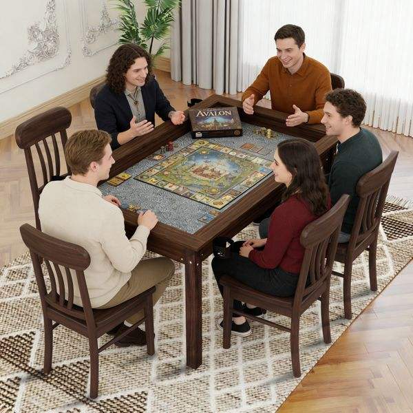 โต๊ะรับประทานอาหารไม้เนื้อแข็งขนาด 63 นิ้ว x 40 นิ้ว พร้อมแผ่นรองกันลื่น ท็อปโต๊ะถอดออกได้ สำหรับผู้เล่น 4-6 คน สำหรับเล่นเกมกระดานและเกมอื่นๆ
