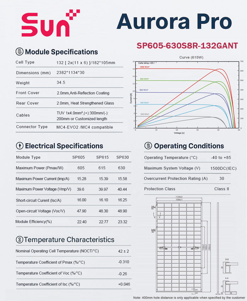 แผงโซลาร์เซลล์ SUNPLUS 630W แบบสองหน้า (Bifacial) สำหรับเซลล์แบบ Half Cell N-Type แผ่นหลังอะลูมิเนียม ประสิทธิภาพ 22.5% ขนาดเซลล์ 125 มม. x 125 มม. มีสินค้าในสหรัฐอเมริกา