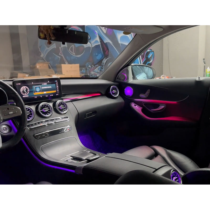 ไฟสร้างบรรยากาศ64สี RHD สำหรับ Mercedes-Benz C-Class 2015-2021ชุดอัพเกรดไฟภายใน W205