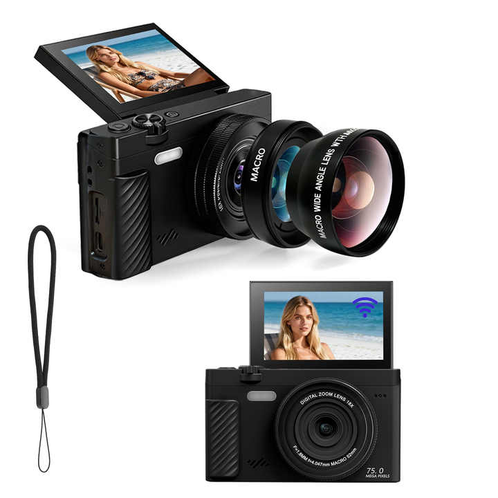 กล้องดิจิตอล DSLR ความละเอียด 8MP รองรับ SD Card ถ่ายวิดีโอ 4K พร้อมหน้าจอพลิกได้ 180 องศา ซูม 18 เท่า โฟกัสอัตโนมัติแบบ Retro สำหรับการถ่ายภาพและวิดีโอบล็อก