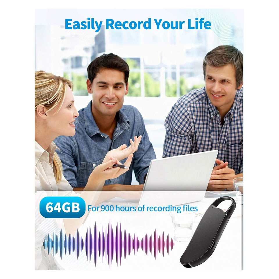 เครื่องบันทึกเสียงดิจิตอล64GB USB C เครื่องบันทึกการโทรโลหะลดเสียงรบกวนสำหรับบรรยายการประชุมการสัมภาษณ์เวลาบันทึก900ชั่วโมง