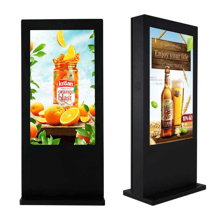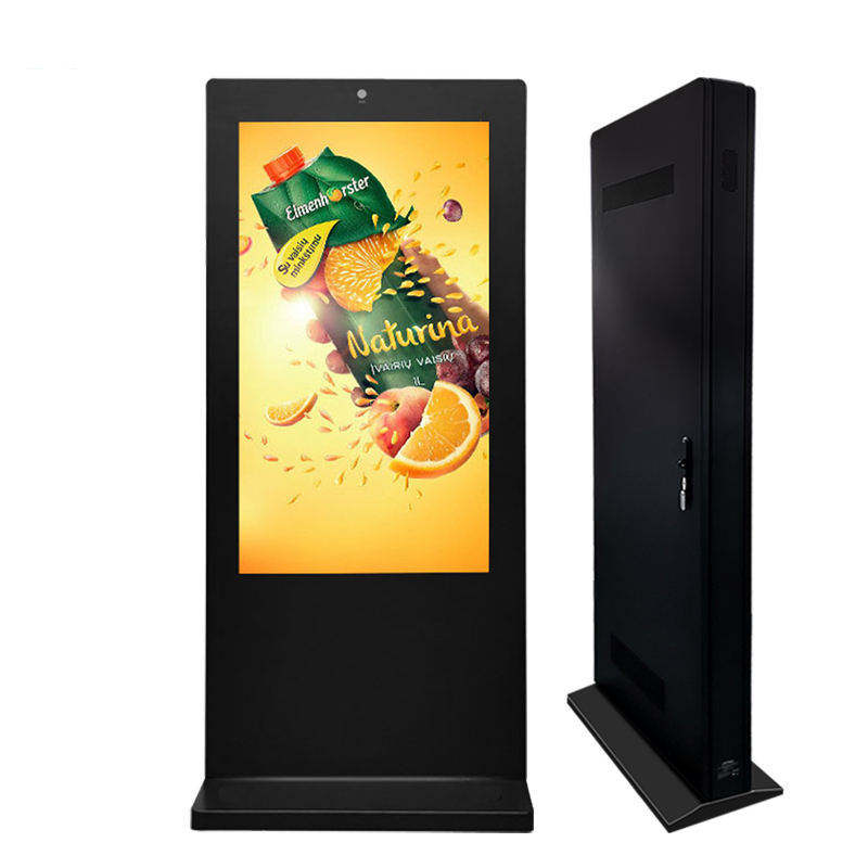 เครื่องแสดงโฆษณาแบบตั้งพื้นกลางแจ้ง ขนาด 65/75/85 นิ้ว ความละเอียดสูง กันน้ำ กันแดด