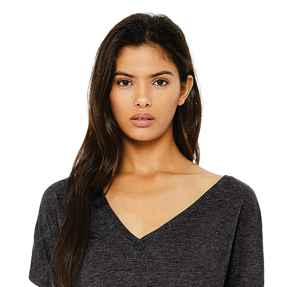 Poly 65% Viscose 32 Single 35% Oz เสื้อยืดคอวีผู้หญิง,เสื้อยืดคอวีสีเทาเข้มพร้อมผ้าฝ้ายด้านล่างโค้งละเอียด