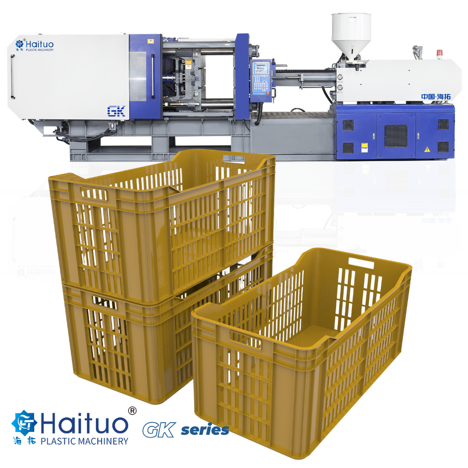 เครื่องฉีดพลาสติกแนวนอน 650T แบบไฮดรอลิก พร้อมเซอร์โวมอเตอร์ สำหรับผลิตกล่องผลไม้ กล่องเก็บผัก กล่องเก็บของทางการเกษตร วัสดุ PA/PC