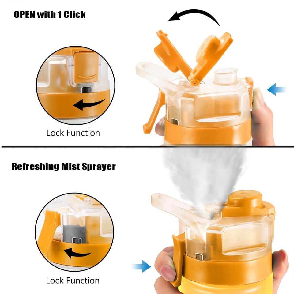 Mist & drink water bottle 2-in-1;Double lock