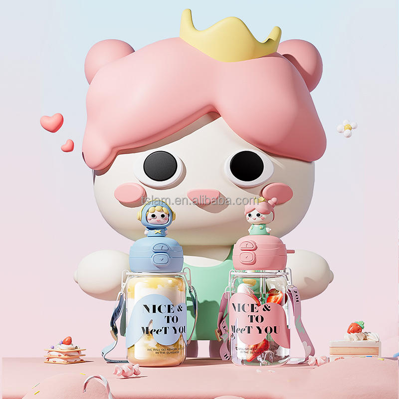 ขวดน้ำสำหรับเด็กขนาด650มล. สำหรับฤดูร้อนขวดน้ำดื่มหลอดดูดน้ำลายการ์ตูนน่ารักสำหรับนักเรียนขวดน้ำพกพาสำหรับกลางแจ้ง
