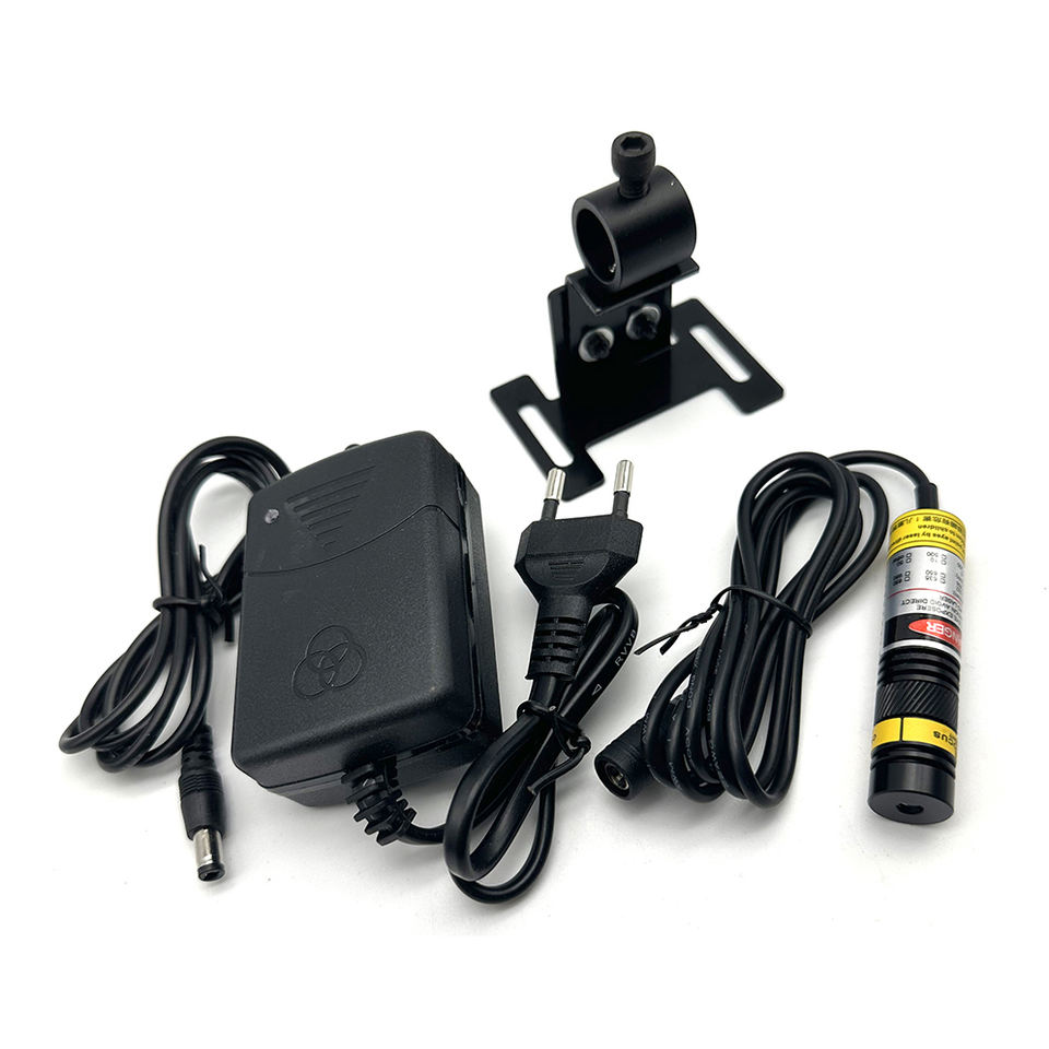 โมดูลเลเซอร์มีความแม่นยำสูงที่สามารถปรับโฟกัสได้สีแดง650nm ใหม่16X70mm อุตสาหกรรม100mW พร้อมเมาท์และแหล่งจ่ายไฟ