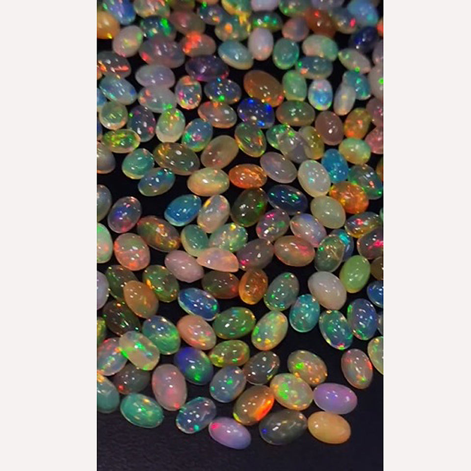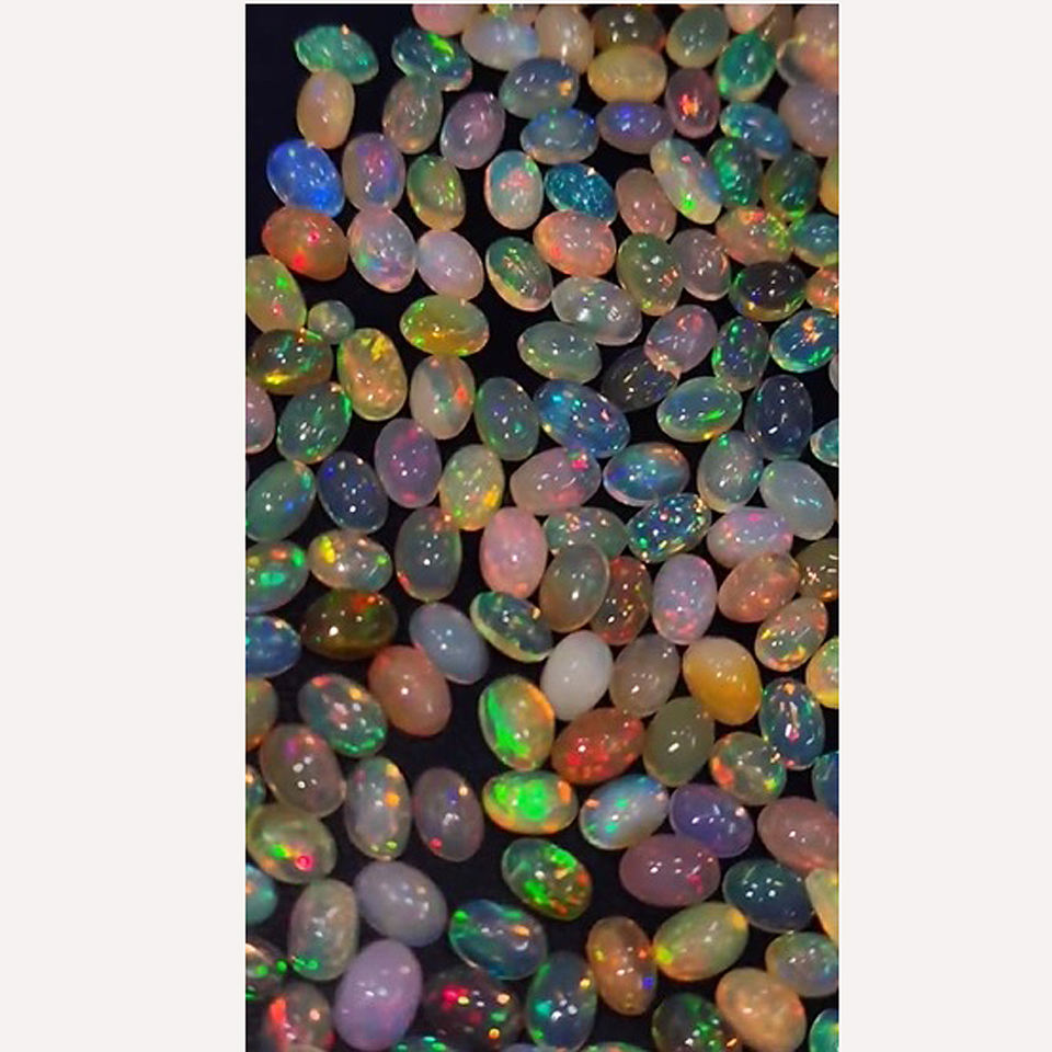 โอปอลเอธิโอเปียธรรมชาติ 651 ชิ้น พร้อมประกายไฟ ขนาด 6x4 มม. รูปทรงวงรี คาโบชอง น้ำหนัก 211 กะรัต คุณภาพดีจาก Iroc Sales อัญมณีหลวม ราคา 169 ดอลลาร์สหรัฐ