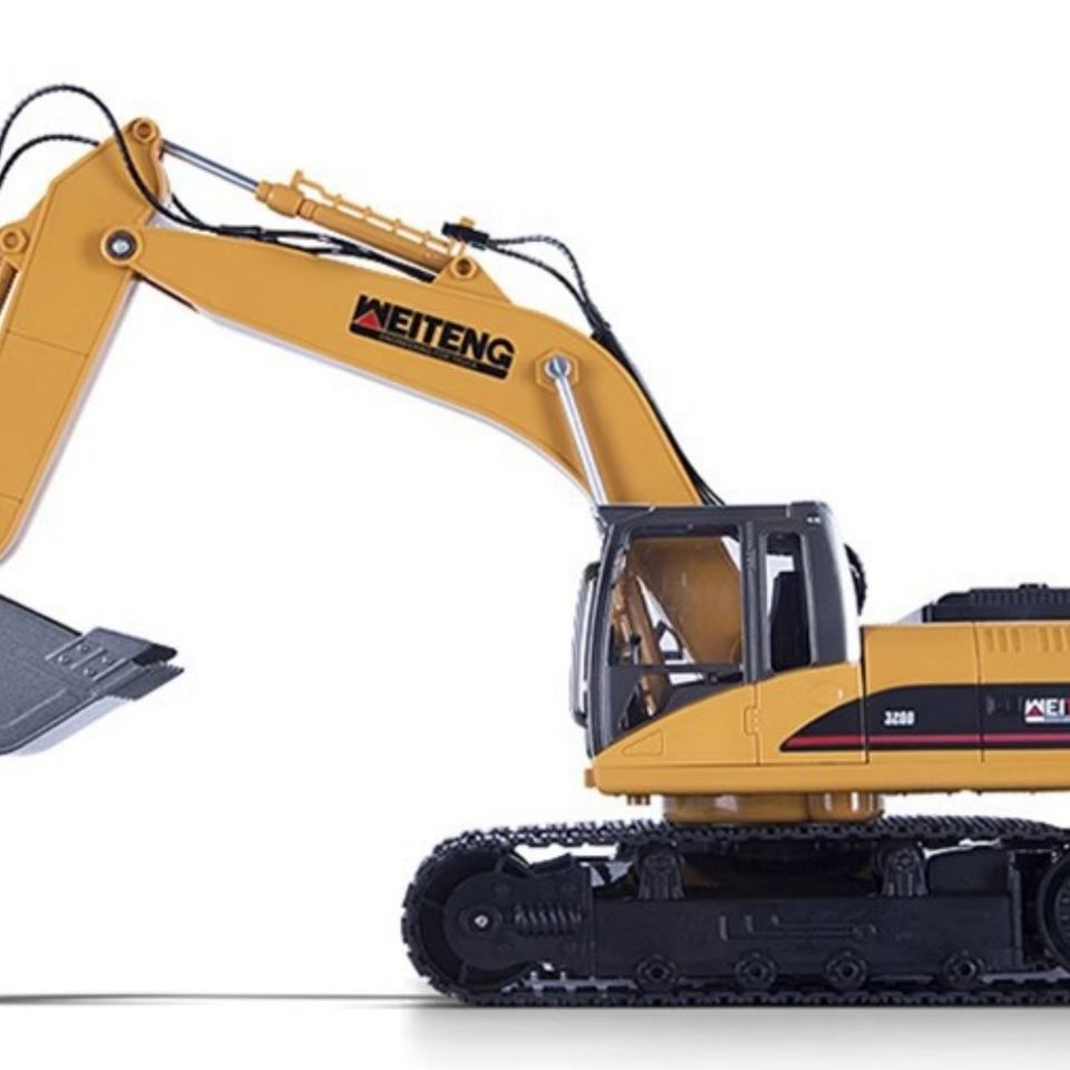 รถขุดวิศวกรรมบังคับวิทยุ รุ่น 6526A 6519A 1/20 วัสดุอัลลอยด์ สามารถพ่นละอองน้ำได้ หัวขุดหมุนได้ 690 องศา จำลองการปล่อยควัน WEITENG