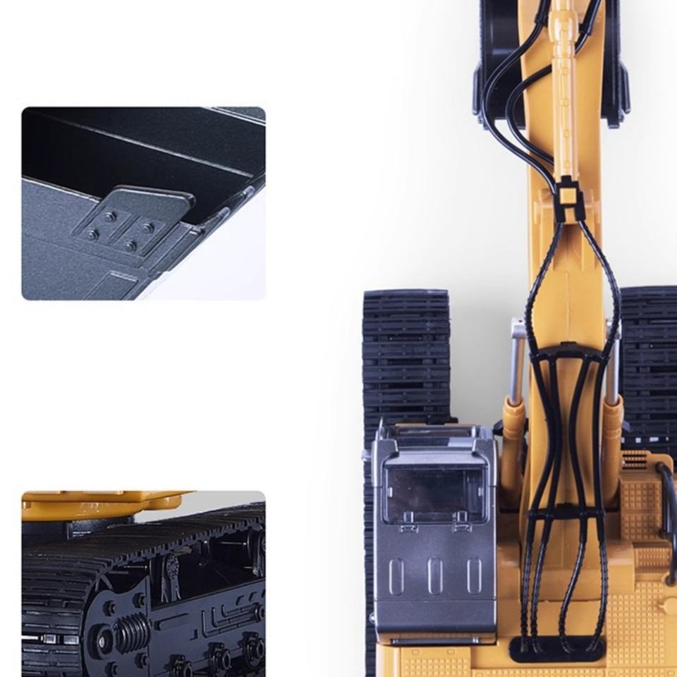 รถวิศวกรรมควบคุมระยะไกล 1/20 RC อัลลอย สเปรย์ รถขุด หอคอยหมุนได้ 690 องศา จำลองการสูบบุหรี่คุณสมบัติ