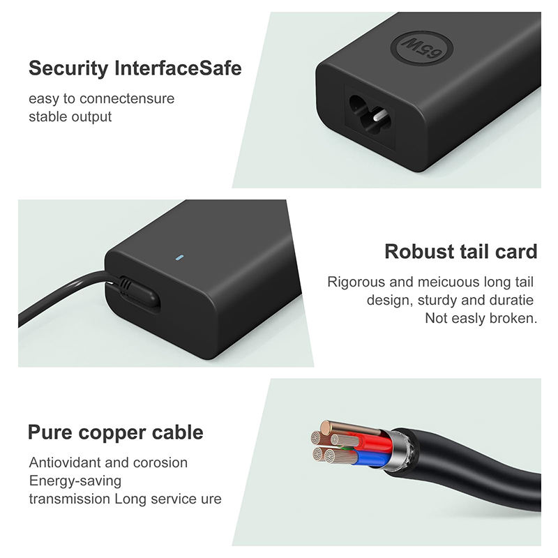 กำลังออก 65W: ให้พลังงานเพียงพอสำหรับการชาร์จและใช้งานแล็ปท็อปของคุณอย่างมีประสิทธิภาพ ทำให้มั่นใจในประสิทธิภาพสูงสุด