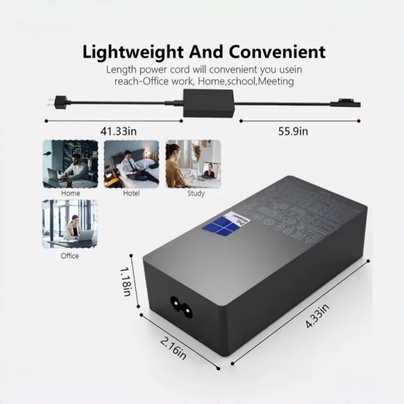 เครื่องชาร์จแล็ปท็อปทนไฟ65W 5V 1A PD เป็นมิตรกับสิ่งแวดล้อมสำหรับ Microsoft Surface Pro 10-3 & Windows 10/8/7 /xp DC Port SCP