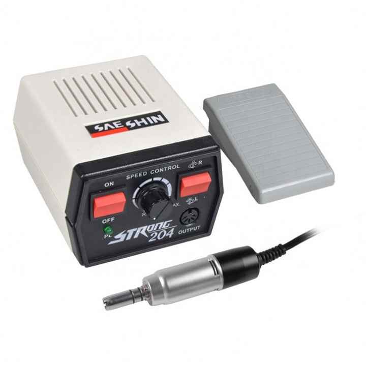 มอเตอร์ไฟฟ้า 65 วัตต์ 35000 รอบต่อนาที แรงบิดสูง สำหรับห้องปฏิบัติการทันตกรรม รุ่น Strong 204 108E แรงบิดสูงสุด 3.5 นิวตันซม. แรงดันไฟฟ้าเข้า 220/110 โวลต์ รับประกัน 1 ปี