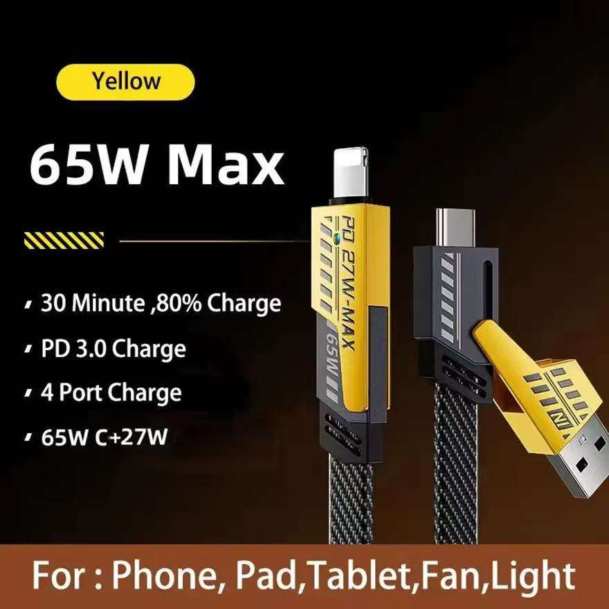 สายชาร์จเร็วพิเศษ65วัตต์ USB 4-in-1เป็นประเภท C PD สามารถใช้ได้กับ iPhone สำหรับ Samsung Xiaomi สำหรับเครื่องพิมพ์ Huawei สำหรับ iOS D
