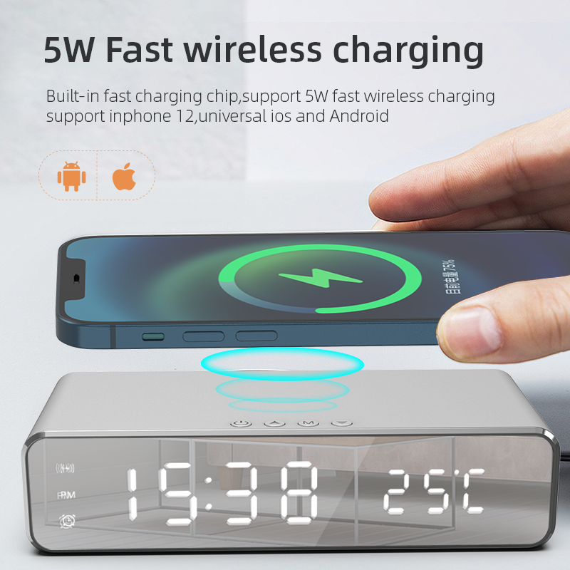นาฬิกาปลุกพร้อมที่ชาร์จไร้สายแบบตั้งโต๊ะ รุ่นขายดีปี 2026 พร้อมโลโก้สั่งทำพิเศษ และหน้าจอ LED