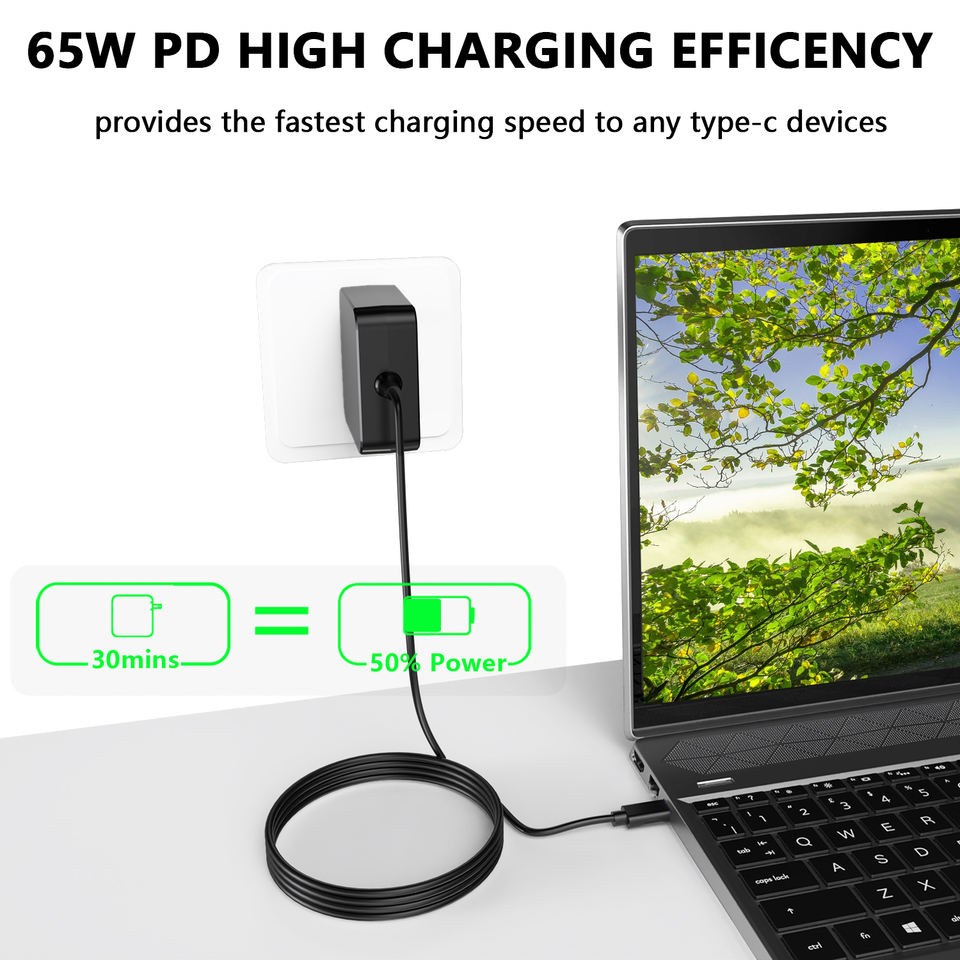 เครื่องชาร์จแล็ปท็อปอเนกประสงค์65W USB C สำหรับ Lenovo Dell HP Asus Chromebook Samsung LG GRAM MacBook Pro Type C