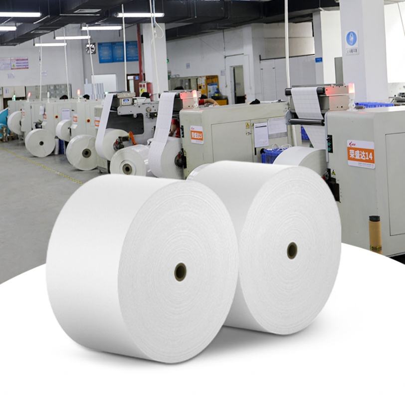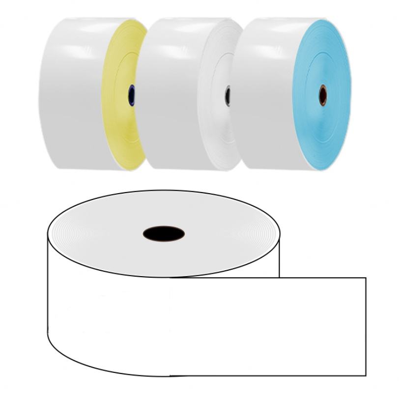 กระดาษเทอร์มอลแบบม้วนจัมโบ้ 65gsm 60gsm 55gsm แบบมีกาวในตัว