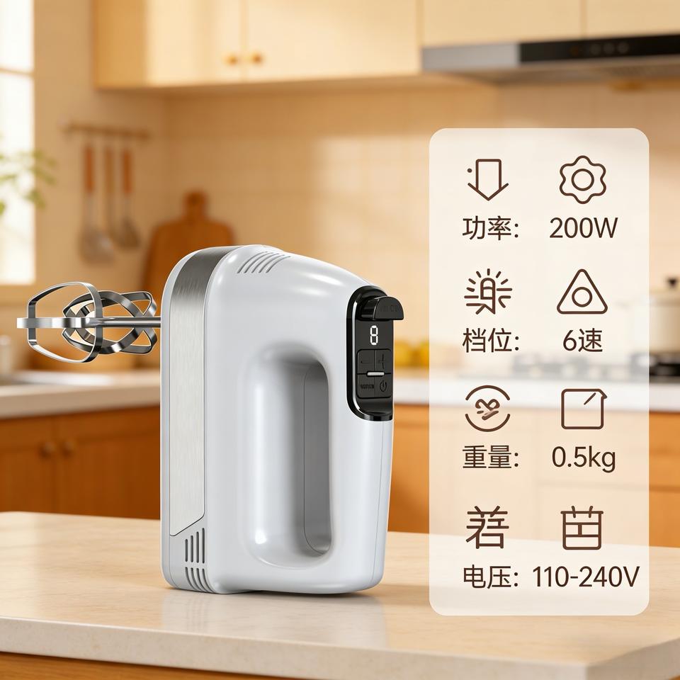 6650 Digital Portable Egg Beater 200W 6 Speeds With Eject Button White Electric Mixer For Kitchen Use