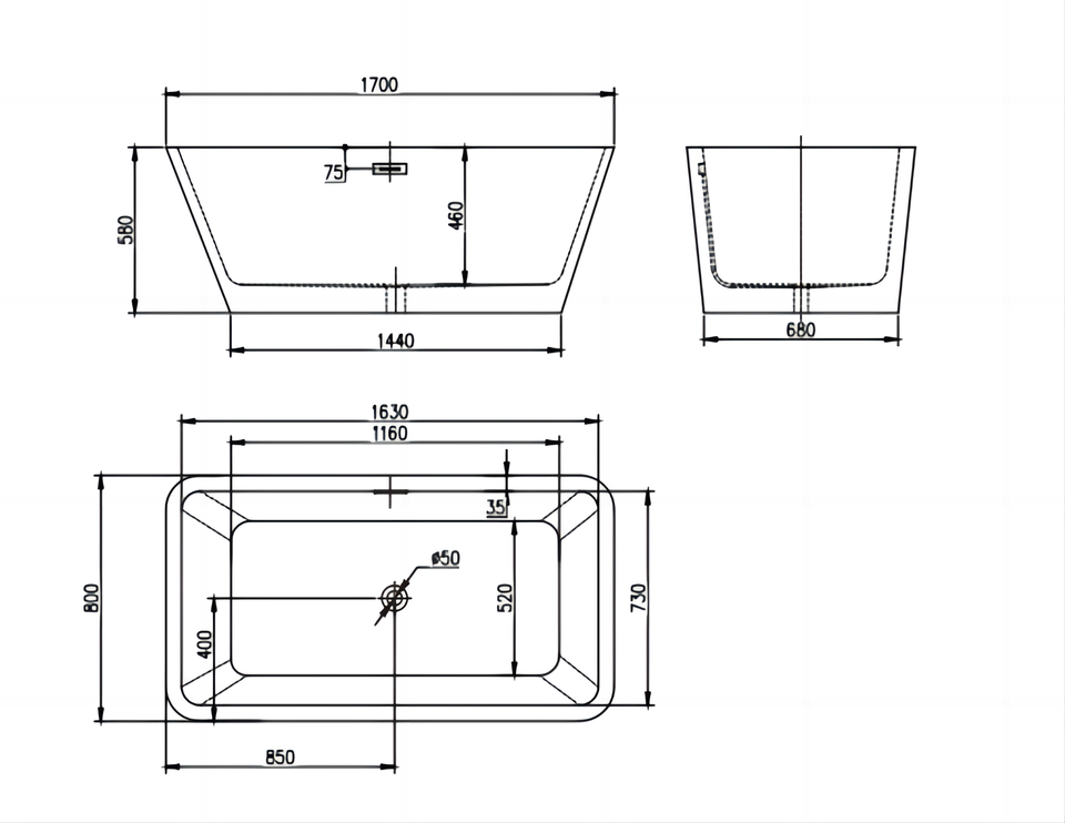 ขนาดเป็นมิลลิเมตร:1700L x 800W X 580H mm
