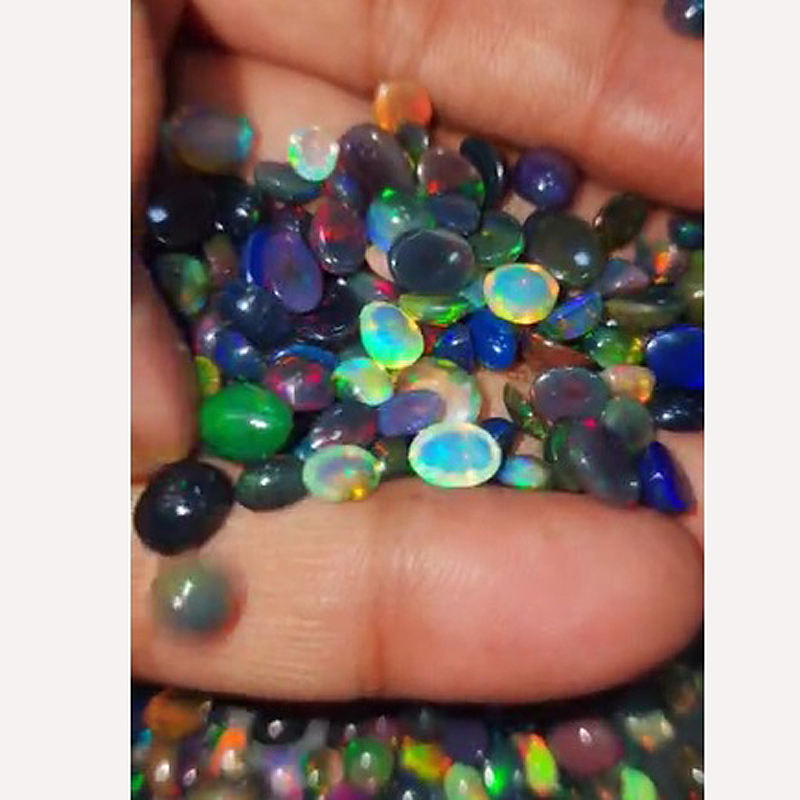 672ชิ้นโอปอลสีดำจากเอธิโอเปียธรรมชาติพร้อมด้วยไฟ6x4มม. 7x5มม. ทรงรี Cabochon 317 CTS iroc หลวมลดการขายพลอย CAB เรา $159สำหรับทุกคน