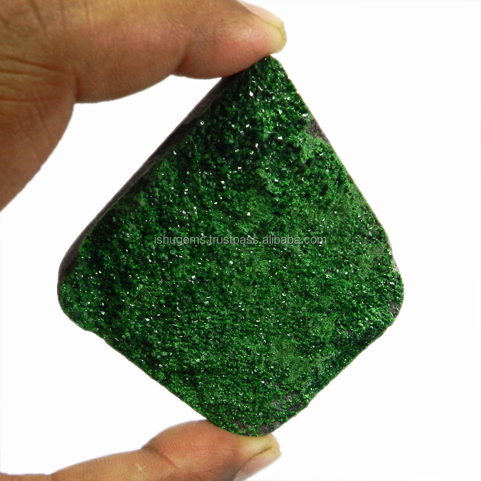 พลอยโกเมน Uvarovite หายาก68.91 GMS อัญมณีสีเขียวธรรมชาติ6.0X5.5cm IG3265อัญมณีหลวมรูปแบบอิสระที่สวยงาม